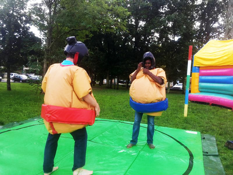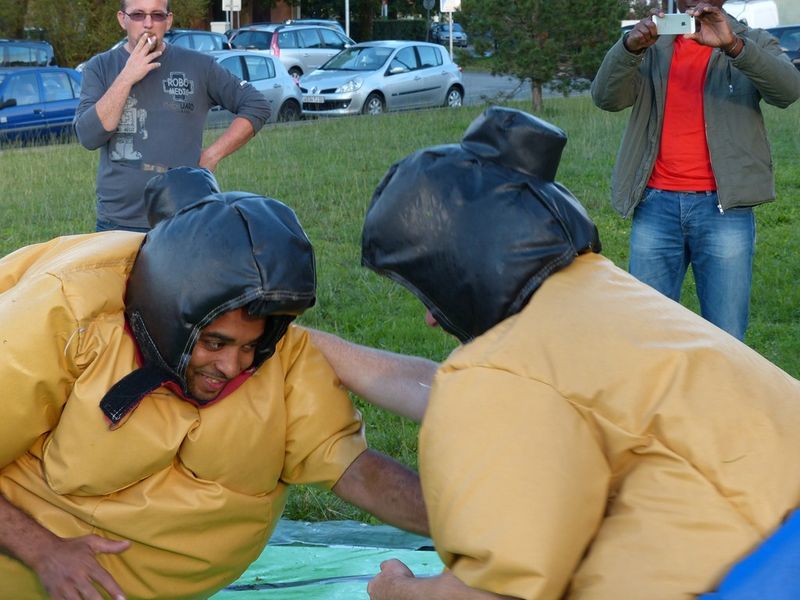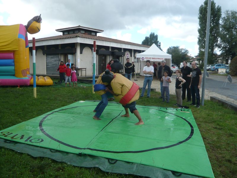 Mais ces quelques soucis météorologiques n’empêchèrent pas la bonne humeur des enfants de s’exprimer à travers les animations mises à leur disposition, tapis et tenues de SUMO, espace de jeux gonflable du singe, et aussi le stand pâtisseries très généreusement fourni par les papas et talentueuses mamans pâtissières du club.